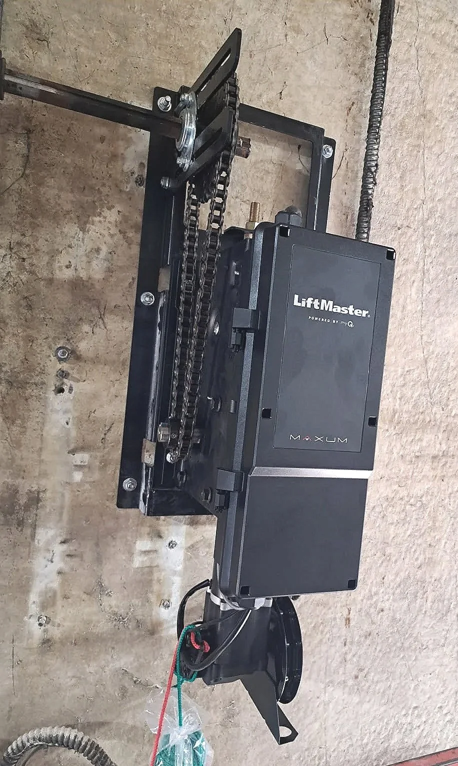 Maintains parallel alignment between the operator output shaft and the door’s torsion shaft during chain tensioning.